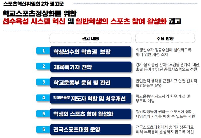 학교스포츠 시스템 전면 혁신을 위한 6대 권고
