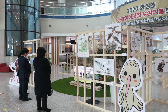 [로컬세계 고용주 기자]경기 화성시청 로비가 작은 화성습지로 변신했다. 화성시는 내달 4일까지 화성시청 로비에서 ‘2020 화성호 시민참여 공모전 수상작품 전시’를 진행한다고 24일 밝혔다.