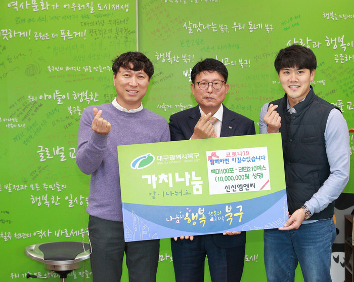 배광식 북구청장은 “코로나19로 경제 상황이 좋지 않음에도 불구하고 우리의 이웃을 위해 따뜻한 응원과 정성을 보내주신 신신엠엔씨 관계자분들께 감사의 인사를 전한다”며, “도움이 꼭 필요한 주민들에게 소중하게 전달하겠다.”며 고마움을 표시했다.