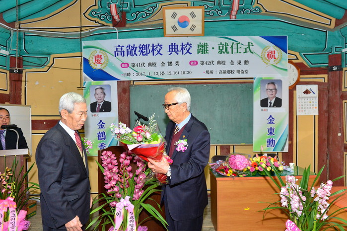 고창향교 전교 이‧취임식이 13일 고창향교 대성전에서 박우정 군수와 무장향교, 흥덕향교 전교 및 유도회장 등 지역 유림 200여명이 참석한 가운데 진행됐다.