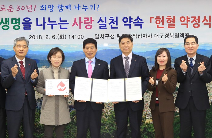 이번 약정식은 달서구 개청 30주년을 맞아 국민의 생명과 건강을 지키기 위한 헌혈활동의 정기적 참여를 적극 유도하고, 공직자가 솔선수범해 건전한 기부문화와 자원봉사 활동을 확산하기 위해 마련됐다.