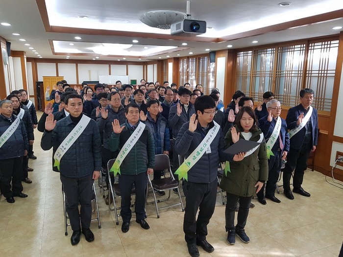 실천 결의대회에 앞서 ‘청렴 선진국으로 가는 길’ 영상물을 상영한 후 2018년을 '부패-Zero해'로 만들자는 목표로 대구시 이경배 감사관의 강의가 이어졌다.