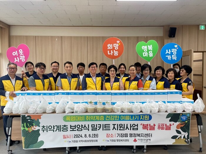 [로컬세계 부산=맹화찬 기자]부산 기장군 기장읍 행정복지센터는 지난 6일 기장읍 지역사회보장협의체와 함께 폭염에 대비하여 취약계층에 보양식 밀키트를 지원하는 ‘복날 福날’ 사업을 추진했다고 7일 밝혔다.