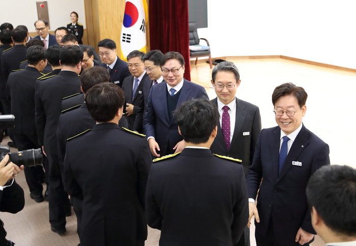 이 지사는 2일 소방재난본부에서 열린 ‘2020년 시무식’에서 “지난해에 이어 올해도 소방재난본부에서 열게 된 것을 하나의 의미로 부여하면 좋겠다”라고 운을 뗀 뒤 “국민의 생명과 안전은 국가의 의무 중 가장 중요한 의무로, 가장 일선에서 국민의 생명과 안전을 지키는 소방공무원들의 역할이 정말 중요하다”고 밝혔다.