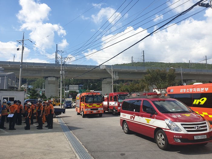 [로컬세계 맹화찬 기자]부산 금정소방서는 선두구동 인근 경남 양산 사송리 및 여락리 일대 등 경계를 이루는 접경지역에서 재난 발생 시 초기 공동대응체계 구축을 위한 합동소방훈련 및 일제 자료조사를 실시했다.