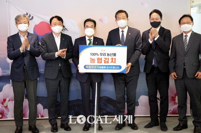 이날 행사에는 이성희 농협중앙회장과 황기철 국가보훈처장 등이 참석한 가운데 국가보훈처의 감사패 수여와 농협김치 전달식 순으로 진행됐다.