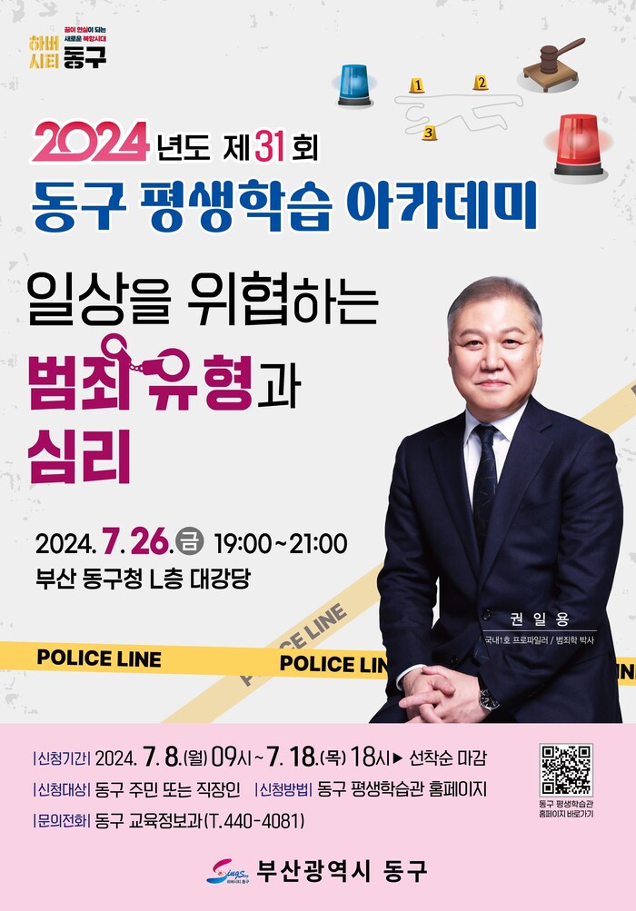 [로컬세계 부산=맹화찬 기자]부산시 동구는 오는 7월 26일 오후 7시부터 동구청 L층 대강당에서 제31회 동구 평생학습 아카데미를 개최한다.