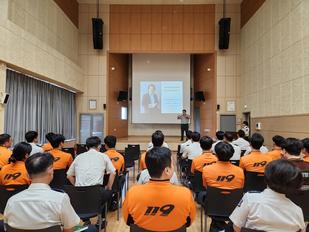 [로컬세계 = 김의준 기자] 부산 부산진소방서는 추석 명절을 앞두고 국민권익위원회 청렴연수원 소속 정승호 청렴전문 등록강사를 초빙, ‘공직자 행동강령으로 살펴본 갑·을질 근절 및 조직문화 개선’이라는 주제로 청렴교육을 실시했다고 30일 밝혔다.
