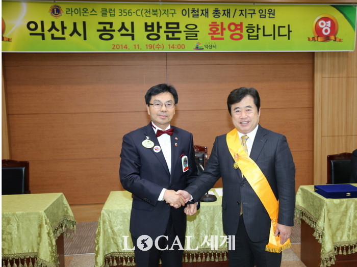 [로컬세계 이민우 기자] 국제라이온스협회 356-C(전북)지구 이철재 총재는 19일 익산시청을 찾아 박경철 시장에게 '무궁화 사자대상 금장'을 전달했다.