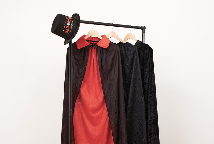 할로윈 무드에 빠질 수 없는 할로윈 망토는 가정에서 아이와 함께 즐길 수 있도록 어린이용과 성인용을 같이 판매한다. 드라큘라 망토는 성인이 착용할 수 있는 적당한 사이즈로, 깃을 세울 수 있어 드라큘라 느낌을 연출할 수 있다. 여자아이에게 어울리는 호박망토는 호박 스커트, 호박 펠트 주머니와 같이 연출해주면 더 귀여운 느낌을 만들어 준다. 무섭게 할로윈 분장을 하고 싶은 남자아이에게는 어린이 망토와 호러타투를 같이 연출해주면 귀여우면서도 무서운 느낌을 연출할 수 있다.