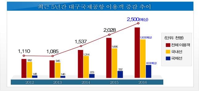 시는 ▲국제선 노선 신·증설 지속 및 노선 안정화 ▲저비용항공사의 신규 유치(에어부산, 타이거에어) ▲부정기 노선 운항의 대폭 확충 ▲지난해 메르스(중동호흡기증후군) 사태로 위축됐던 항공수요 회복에 따른 것으로 분석했다.