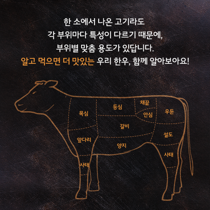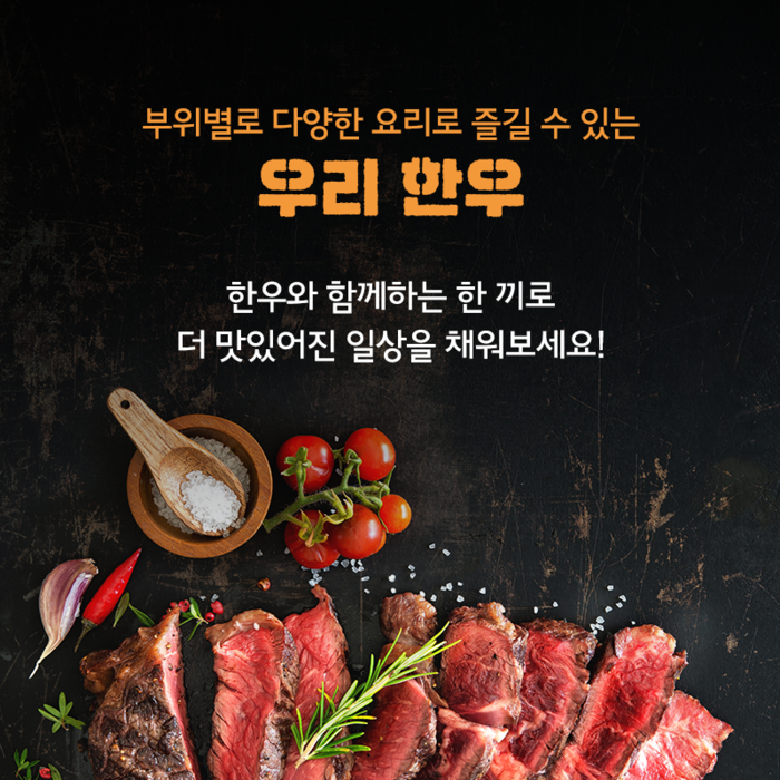 부위별로 다양한 요리를 즐길 수 있는 우리 한우, 한우와 함께하는 한 끼로 더 맛있어진 일상을 채워보세요.