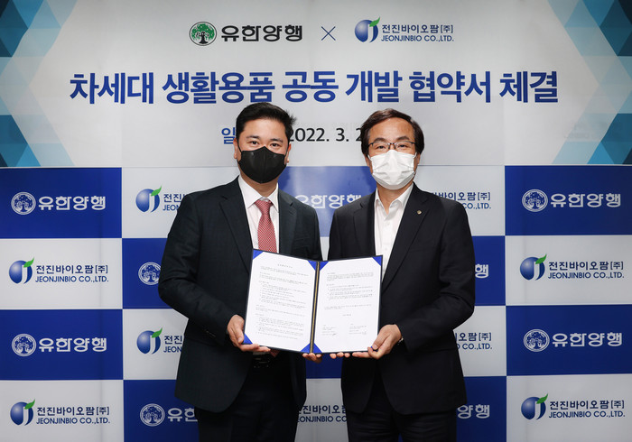 유한양행(대표이사 조욱제)과 전진바이오팜(대표이사 이태훈)이 3월 24일 차세대 생활용품 사업을 위한 업무협약(MOU)를 체결했다.