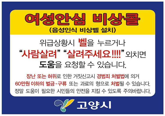 | ▲위험하면 소리치세요! 음성인식 비상벨 설치/자료=고양시 |