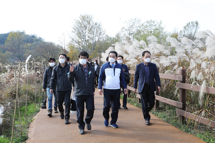 | ▲7일 허성무 창원시장이 ‘철새 도래지’ 주남저수지 탐방로 등 현장점검을 하고 있다.(창원시 제공) |