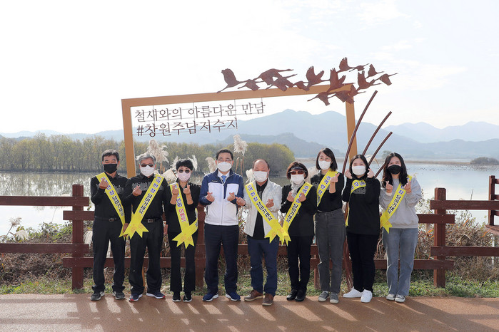 [로컬세계 권인진 기자]허성무 창원시장은 7일 재두루미 · 큰고니 · 기러기류 등 겨울 철새 48종 1만5000여 마리가 찾아와 장관을 이루고 있는 주남저수지를 찾아 탐방로 등을 현장 점검했다.