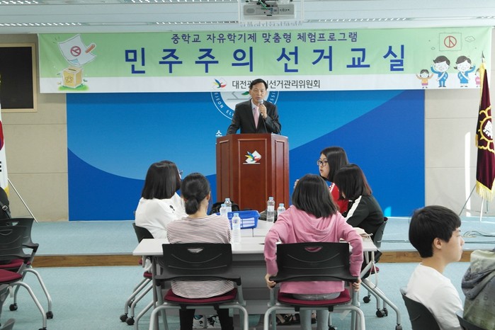 민주주의 선거교실은 대전 관내 중학교를 대상으로 한 체험 프로그램으로 오는 28일까지 5회에 걸쳐 진행된다.