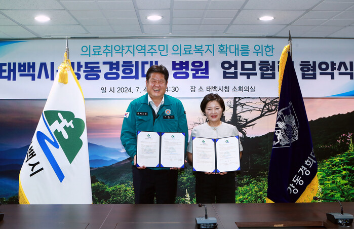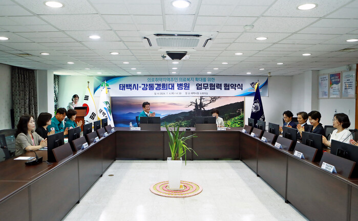 강원 태백시가 4일 시청 소회의실에서 강동경희대학교병원과 의료취약지역주민의 의료복지 확대를 위한 업무협약을 체결했다.