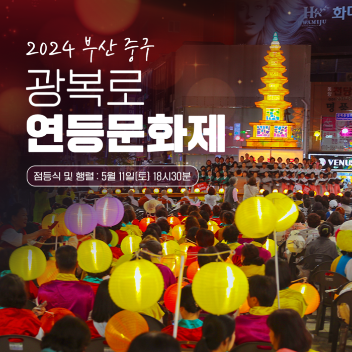 한편, 지난 4월 27일부터 광복로와 광복중앙로, 국제시장 사거리에 전시된 거리 연등과 대형 탑등은 오는 16일까지 중구 광복동의 밤거리를 희망과 안녕의 빛으로 수놓을 것이다.