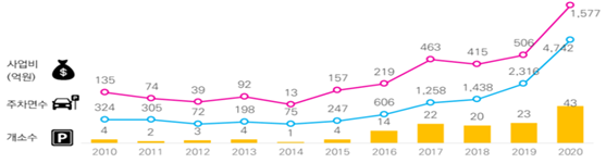 시는 그동안 지속적인 공영주차장 확충사업을 통해 지난해 말까지 총 2458곳, 9만2450면의 노상·노외 공영주차장을 확보했다. 또한, 공영주차장 외에 부설주차장 개방 지원사업을 통해 지난해 1502면을 확보해 주차난 해소에 노력하고 있다.