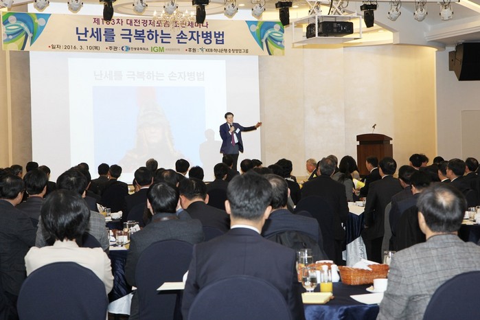 대전상공회의소는 10일 오전 7시 대전 유성 리베라호텔 4층 제니스홀에서 ‘제183차 대전경제포럼 조찬세미나’를 열고 ‘난세를 극복하는 손자병법’이라는 주제로 특강을 실시했다.