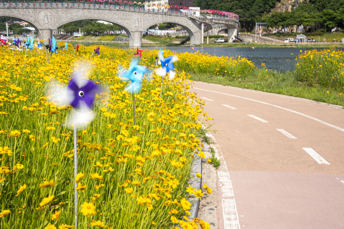 [로컬세계=이태술 기자] 남원대교~금곡교에 이어지는 금계국의 하늘하늘 춤추는 듯한 향연이 선선한 아침저녁 산책코스로 인기몰이하고 있으며, 자전거 라이더에게도 큰 볼거리를 제공하고 있다.