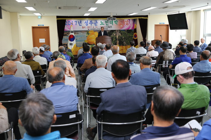 [로컬세계 박세환 기자]경북 성주군은 '2017년 성주군 노인대학'을 지난 13일 성주군노인회관 2층 강당에서 입학생 60여 명이 참석한 가운데 개강식을 갖고 오는 9월 12까지 13회에 걸쳐 교육을 실시한다.