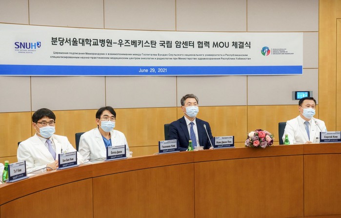 분당서울대병원(병원장 백남종)이 지난 6월 29일 우즈베키스탄 국립 종양 및 방사선의학센터(약칭 ‘우즈베크 국립암센터’)와 교육, 진료, 연구 등에서 전방위적 협력 관계를 구축하기 위한 업무협약(MOU)을 체결했다고 밝혔다. 협약식은 화상회의 방식으로 진행됐다.