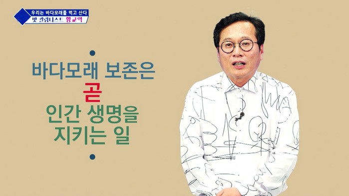 | ▲황교익 맛 칼럼니스트가 명사 강연 영상을 통해 '바다모래의 소중함'을 설명하고 있다.(수협중앙회 제공) |