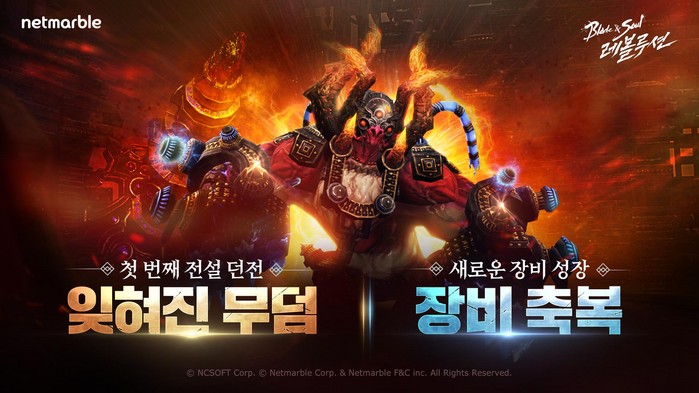 넷마블(대표 권영식, 이승원)은 모바일 MMORPG(다중접속역할수행게임) '블레이드 & 소울 레볼루션(개발사 넷마블에프앤씨)’에 신규 던전 ‘잊혀진 무덤’, 장비 성장 콘텐츠 ‘축복’ 등을 추가하고 이를 기념한 이벤트를 진행한다고 30일 밝혔다.