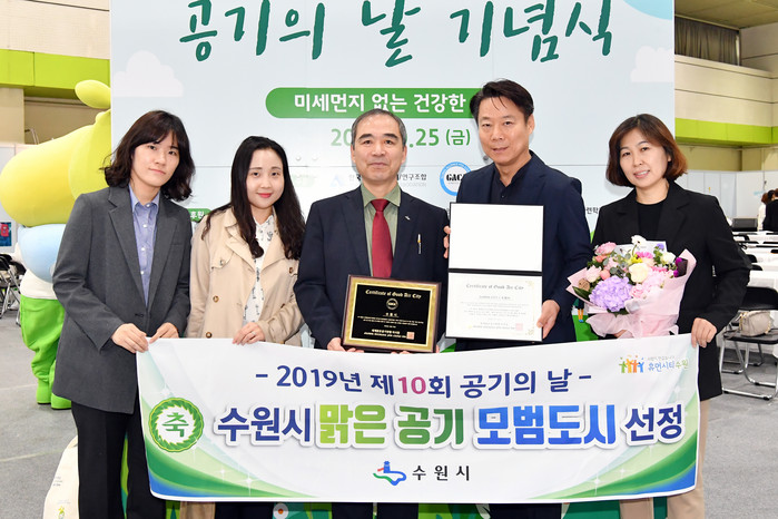 수원시는 25일 서울 코엑스에서 개최된 2019년 제10회 공기의 날 기념식에서 ‘Good Air City(맑은 공기 모범도시)’로 선정돼 인증서를 받았다.