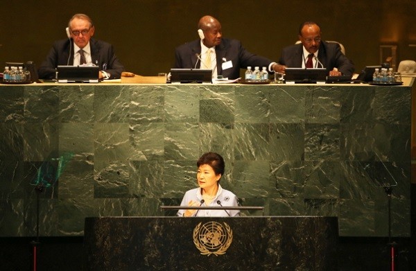 ▲ 박근혜 대통령이 26일(현지시간) 오전 유엔본부에서 열린 유엔 개발정상회의에서 기조연설하고 있다.<사진출처 =청와대 홈페이지> |