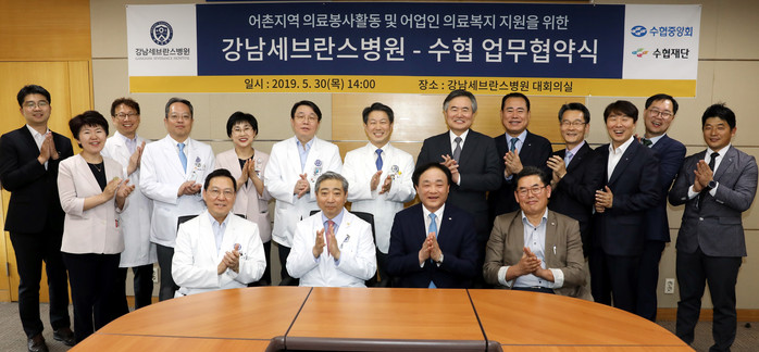 수협재단(이사장 임준택 수협중앙회장)과 강남세브란스병원(병원장 윤동섭)이 업무협약을 맺고 어촌지역 의료 소외계층 지원을 위해 공동 노력하기로 했다.