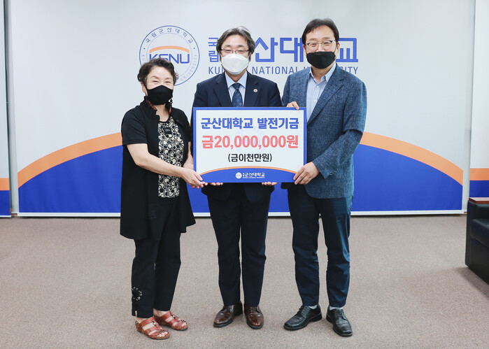 [로컬세계 = 양해수 기자]전북 군산대학교는 28일 대학 본부에서 발전기금 전달식을 개최하고 김종수 인문대학장과 동아시아학부 남이숙 교수로부터 각각 1000만 원씩 대학발전기금 2000만 원을 전달받았다.