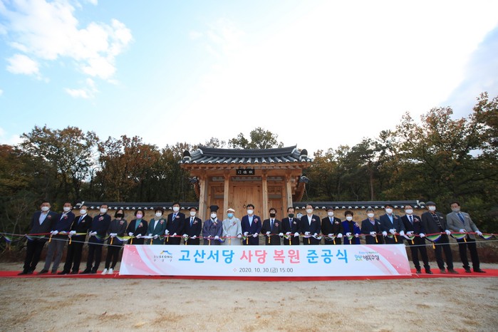 ▲지난 10월 30일 고산서당에서 고산서당 사당 복원 준공식을 실시하고 기념촬영하고 있다. |