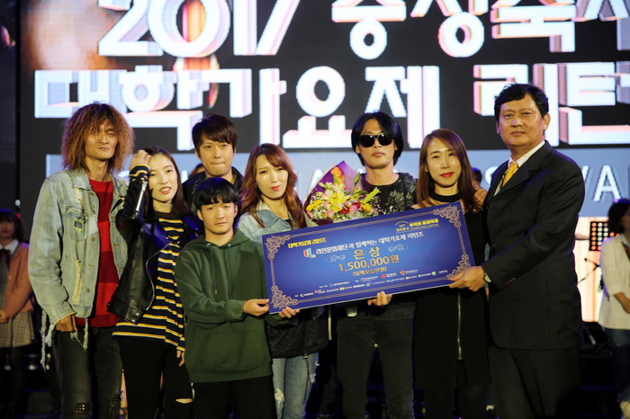 ▲19일, 광주 5.18 민주광장 주무대에서 열린 제14회 추억의 충장축제 ‘라인문화재단과 함께하는 대학가요제 리턴즈’에서 라인문화재단 공병도 이사장이 수상팀에게 은상을 전달하고 있다.(라인문화재단 제공) |
