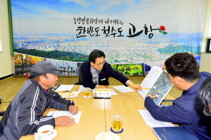 ▲유기상 고창군수가 지난 20일 성내면에서 민원지를 찾아 소통행정을 펼치며 직접 민원을 챙기고 있다.(고창군 제공) |