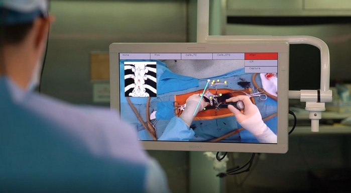 순수 국내 기술로 개발된 이 플랫폼은 척추 고정에 사용하는 척추경 나사를 인체 구조물 위에 증강현실 기반의 오버레이 그래픽으로 정확하게 실시간 투영시키는 것이 특징이다. 이를 통해 수술 집도의는 수술 부위를 보다 정확하게 파악해 더욱 정교하고 안전한 수술을 할 수 있게 됐다.