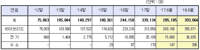 | ▲친환경자동차 등록현황. |