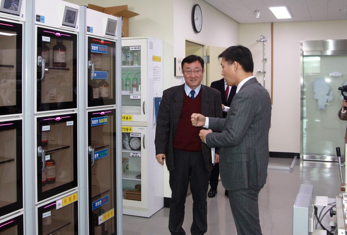 | ▲김영문 청장이 21일 경남 진주 혁신도시 이전 6년차를 맞은 중앙관세분석소를 방문해 현장을 점검하고 있다.(관세청 제공) |