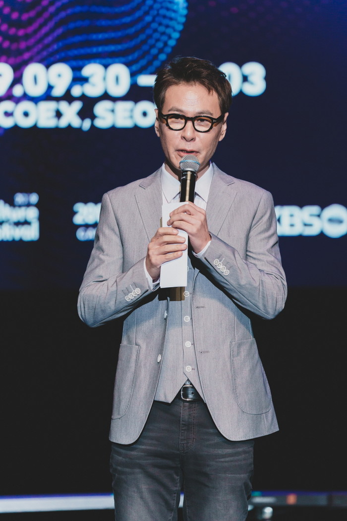 ▲뮤콘 2019 로드쇼에서 윤상 예술감독이 인사말을 하고 있다. |