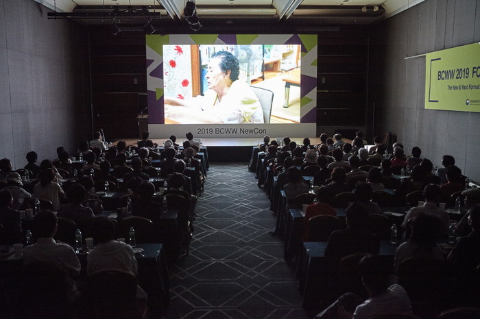 ▲23일 서울 강남구 코엑스 그랜드볼룸에서 콘진원 실버문화방송콘텐츠 제작지원작 '시인할매'의 상영회가 진행되고 있다. |