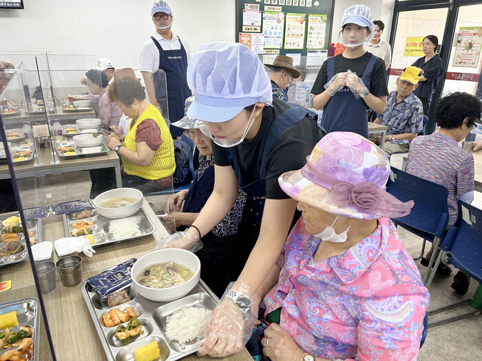 농협경제지주(대표이사 박서홍)는 초복인 지난 15일 서울시 마포구 소재‘아현노인복지센터’에서 어르신들의 건강한 여름나기를 지원하기 위해 삼계탕 배식봉사와 누룽지·삼계탕 꾸러미 및 쌀 나눔기부를 진행했다.