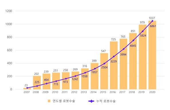 ▲분당서울대병원 비뇨의학과 로봇수술 시행 건수 증가 현황 |