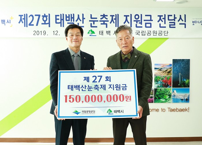 이날 전달식을 위해 태백을 방문한 국립공원공단 권경업 이사장은 “지원금이 태백산 눈축제의 성공적 개최에 보탬이 되길 바란다”며 “앞으로도 지역과 상생하는 국립공원이 될 수 있도록 다방면에서 노력하겠다”고 말했다.