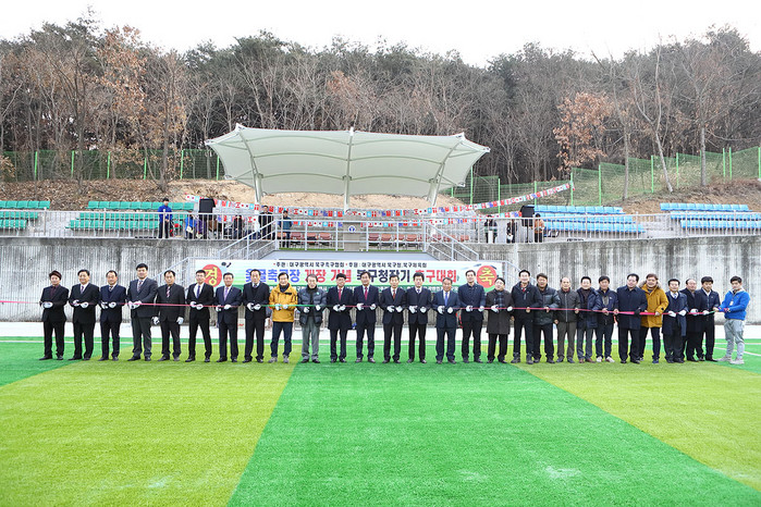 이날 행사에는 배광식 북구청장, 하병문 북구의장, 구의원, 시의원, 축구동호인 등 주민 400여명이 참석했으며, 테이프커팅, 축구장 조성에 기여한 시공사에 대한 감사패 전달 순으로 진행됐다.
