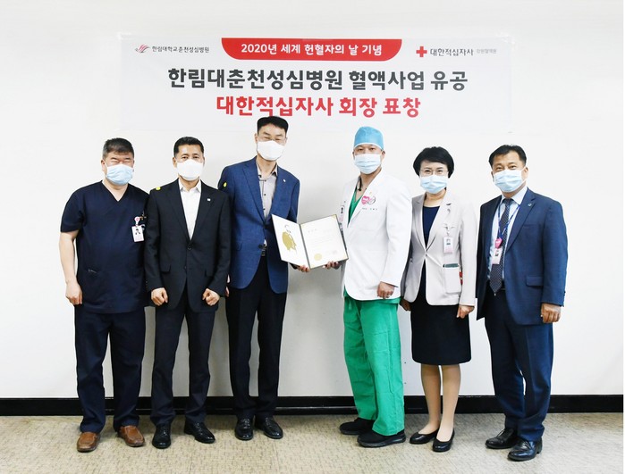 한림대춘천성심병원(병원장 이재준)이 16년간 진행해온 ‘생명나눔 헌혈 캠페인’ 공로를 인정받아 14일 대한적십자사 회장 표창을 받았다.