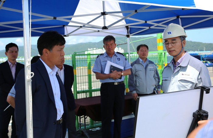 | ▲김영문 관세청장이 30일 울산항 6부두 수출자동차 환적부두 현장 점검을 하고 있다. |