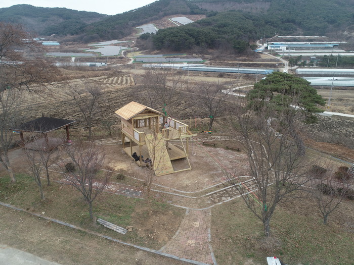 ‘트리하우스’는 나무를 활용한 조합놀이대로 자연 친화적인 아이들의 놀이공간이다. 나무 정자와 아름드리 소나무가 지키고 있는 당산숲 공터에 새로이 조성된 트리하우스는 나무 골조 기반에 그네, 클라이밍, 짚라인, 오두막 등이 보태졌다.