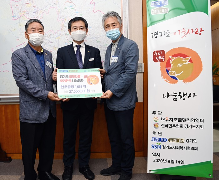 이 자리에는 이용철 경기도 행정2부지사, 이연묵 전국한우협회 경기도지회장, 김종태 경기도 사회복지협의회 사무총장 등이 참석했다.